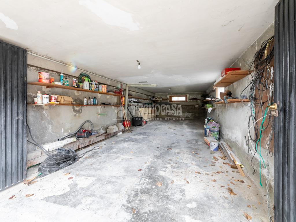 Garaje cubierto con capacidad real para dos vehículos grandes.